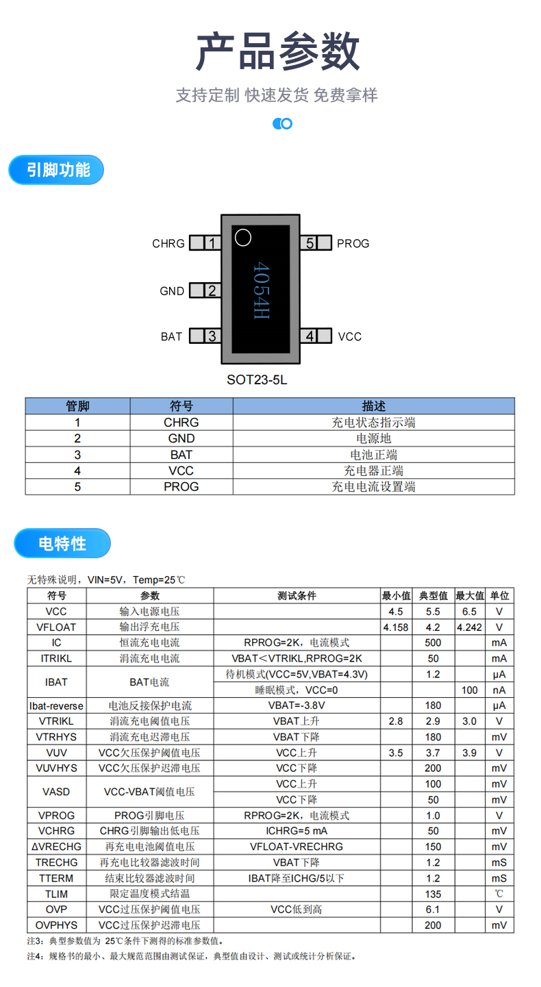 45V高耐压单节锂电池充电芯片 500mA充电电流 上海XR4054HP